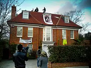 An activist group called Topple the Tyrants squatted a home belonging to Saif al-Islam, son of Libyan leader Muammar Gaddafi, in March 2011.[103] It was an eight-bedroom mansion in Hampstead Garden Suburb, which had been listed for sale for €12.75 million when the 2011 Libyan civil war began.[104]