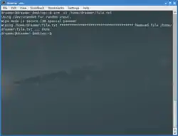 srm (or Secure Remove) is a command line utility for Unix-like computer systems for secure file deletion. srm removes each specified file by overwriting, renaming, and truncating it before unlinking. This prevents other people from undeleting or recovering any information about the file from the command line.