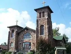 St. Agnes Catholic Church is a Roman Catholic church at 203 Eighth Street in Mena, Arkansas. The parish, established not long after Mena's founding in 1896, meets in a stone Spanish Mission Revival built in 1921–22 to a design by Rev. A. P. Gallagher, who oversaw the parish for more than 50 years. It is one of Polk County's most significant architectural statements, merging the common use of local fieldstone with more sophistical Mission style elements.[2] The church was listed on the National Register of Historic Places in 1991.[1]