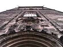 The building of the gothic church, in the basilica style and romanesque westwork, was begun at the end of the fourteenth century, the choir in 1389, the northern nave in 1404, and the tower in 1503. By 1504, the nave with its side altars was finished and all that remained to be completed was the tower. This was only done in 1883-1890, when the tower reached its current height. The interior, with the quire and the radiating side chapels to the east, was modeled after the French cathedrals.