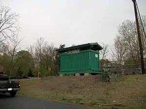 St. Denis station contains two platforms and three tracks. The southbound platform, located on the corner of Arlington and Maple Avenues, has a shelter that is made of plexiglas and aluminum.[3] MARC gives this platform as the official address of the station. The northbound platform contains a wooden shelter on an embankment at the end of East Street with the name of the station on the back of it. The station also contains two at-grade wooden pedestrian crossings, one which spans the entire right-of-way from Arlington Avenue to East Street, and the other which only runs from the southbound platform on Maple Avenue to the middle tracks.