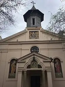Reportedly, around 1725-1730, Clucer Radu Colțea built a wooden church on land that passed to the Colței Inn after 1745. In 1841, inn manager Lazăr Kalenderoglu demolished the church and built the present one a short distance away; both had as their patron Elijah, the protector of travelers by land. In 1954, the Bucharest Archdiocese renovated the church and handed it over to the local Bulgarian community. The grant was formalized that October during a re-sanctification ceremony involving Romanian Patriarch Justinian, his Bulgarian counterpart Cyril and a large number of priests from both countries.[1] In 2009, as part of an effort to reclaim properties lost under the communist regime, the Romanian Church reclaimed the building, which underwent restoration and consolidation in 2012-2015.[2]