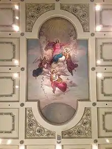 Major renovations were carried out in 1870, the transparent glass windows replaced with new stained glass. New pews to seat about six hundred people were added. A ceiling painting of the Assumption of Mary by Wilhelm Lamprecht was added. The following year, the newly renovated church was decorated for the public celebration of the twenty-fifth anniversary of Pius IX's election to the papacy; gaslight illuminations were installed for the occasion but could not be used because of adverse weather.[4]