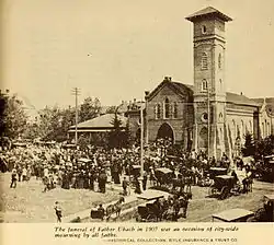 The parish was founded in 1874 and the first sanctuary was a frame building at Third and Beech built in 1875 under the leadership of Antonio Ubach on land donated by Alonzo Horton.[1][2] Adjacent to the church was an adobe house where Ubach lived. The church was dedicated the same year by Bishop Francis Mora.[2] In 1894, the parish completed and dedicated a much larger brick church.[3]