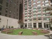 The church and rectory-turned convent chapel and convent were eventually sold to a private developer and demolished in the 1980s. The site is now occupied by the plaza in front of the Madison Belvedere Apartments.[1][8]