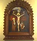 A parishioner from the Hispanic community painted "Lord of the Miracles", (principal feast day: October 28) as seen to the left, which hangs in the lower church in a hand made frame created in Peru. It is a gift to St. William from the Peruvian people of the parish who make up a very large portion of the local Hispanic community. Each year in October, the Peruvian Community of St. William host a celebration of this feast with a special Mass and procession around the neighborhood in which they carry a palanquin with a much larger version of this painting, on their shoulders, followed by a festival in the hall. With traditional music and prayer, while much smaller, this event is an echo of the same procession that takes place in Lima, Peru each year. This celebration draws hundreds of people of Peruvian descent from all over the Delaware Valley Region for the day-long event.[12]