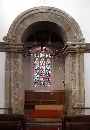In the 13th century the chancel was altered, hence the deeply splayed Early English Gothic lancet windows on the south side (one of which is now blocked).[1] The sedilia and piscina in the chancel are 14th-century, with Decorated Gothic ogeed arches.[8] The clerestory and roof of the nave are late Perpendicular Gothic and date from 1452.[6]