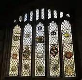 The church had much stained glass in 1622 that disappeared during the Reformation. The current eleven coloured glass windows on the north, west and south sides of the church were erected in 1879 by Lavers, Barraud and Westlake, each being named for its donor; the scenes depicted tell the Life of Christ from the Annunciation to the Last Supper.[6][21] The stained glass in the chancel and the Hasting Chapel was erected in 1924, and most was once in the castle;[22] the earliest glass is a German, Swiss and Flemish work possibly originally from Farleigh Hungerford.[18] The chancel's east window contains arms of Richard I and Edward I and the south window includes "The Magi bearing gifts" and the arms of Catherine Parr. The Hastings Chapel south window has several panels from the 15th and 16th centuries, and one which could possibly be as old as the 13th century. The chapel's east window also has some high quality work, including "The Last Supper". The large west window in the tower is plain glass, as is the clerestory.[22]