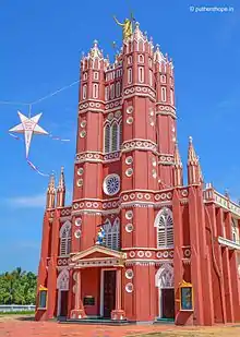 St Ignatius Church, Thiruvananthapuram is a Catholic church located in the Kadinamkulam panchayat of Trivandrum, Kerala, India. The church is the center of all religious and social activities. The present church was built in 1989. The foundation stone was blessed by Pope John Paul II during his visit to Trivandrum in 1986. The church is the replica of St.Joseph's Cathedral in Trivandrum City. A grotto of Mary is also built in front of the church and the statue of Mary in the grotto was brought from Lourde by a native of Puthenthope. A parochial house, which shows the typical architecture of Kerala is also situated nearby the church. St.Ignatius Parish community hall is another building situated along with the church in the junction of Puthenthope.