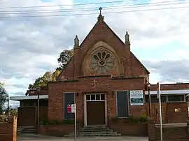 St John's Roman Catholic Church and Cemetery is a heritage-listed former school and now Roman Catholic church building located in George Street in Campbelltown. It was designed by John Joseph Therry and built from 1824 to 1841. It is also known as St Johns Roman Catholic Church and Cemetery (former), Saint Johns Roman Catholic Church and Old St John's Church. It was added to the New South Wales State Heritage Register on 2 April 1999.[1] The current church, called St John the Evangelist Catholic Church was built in 1886 and is located at Cordeaux Street, Campbelltown in the City of Campbelltown local government area of New South Wales, Australia. The property is owned by Trustees of the Roman Catholic Church for the Diocese of Wollongong.
