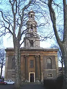 Neoclassical Doric with a portico and steeple. Bombed but restored in 1949.[4][14][15][16] | II* |