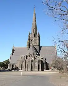 Work on the remainder of the church, the front tower crowns, the transepts, the crossing and spire, and apsidal chapels did not begin until 1930. The completion was based on the original design, the supervising architects being Hennessy & Hennessy of Sydney, and the builder W J Kelly of Geelong. [3] The completion of the church was celebrated in June 1937. [4]
