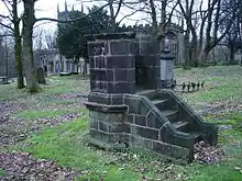 The churchyard also contains a memorial to the Protestant martyr George Marsh which originally stood half a mile to the west of the church on New York Road. Inscriptions on its base record his martyrdom and the erection of the memorial in 1893.[6]