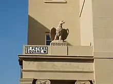 The Pumpkin Eater in 1963/4 was filmed on location at St Peter's Square. The director was Jack Clayton, the script was by Harold Pinter and the leading roles were played by Anne Bancroft and Peter Finch[6]