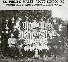St Philip's Marsh Adult School Football Club was an English association football club based in the St Philip's Marsh area of Bristol. They were founded in 1919 and won Division Two of the Bristol and District Football League in their first season.