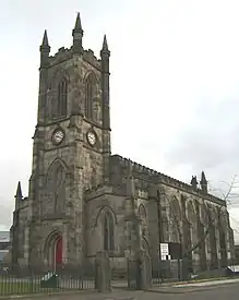St Thomas' Church is on Broad Street, Pendleton, Salford, Greater Manchester, England. It is an active Anglican parish church in the deanery of Salford, the archdeaconry of Salford, and the diocese of Manchester. Its benefice is united with those of five nearby churches including St Aidan’s, Lower Kersal; St Luke’s, Weaste; Emmanuel LEP, Langworthy and Holy Angels, Claremont to form the Salford All Saints' Team Ministry.[1] The church is designated by English Heritage as a Grade II listed building.[2] It was a Commissioners' church, having received a grant towards its construction from the Church Building Commission.[3]