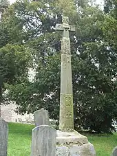 South of the church lies an Anglo Saxon high cross. The cross is carved sandstone and consists of a base, measuring 1.5 metres (4 ft 11 in) by 1.4 metres (4 ft 7 in), with a shaft and cross head. 11th-century carvings on the shaft depict the legend of Sigurd.[10]