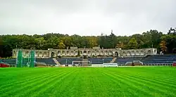 With the implementation of the Oder–Neisse line, the area passed to the Republic of Poland in 1945. The stadium underwent a complete refurbishment in 2003. It now counts as one of the oldest stadia in Poland with its historical south-eastern tribune reminiscent of an amphitheatre.