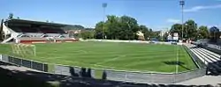 The field received its first, wooden stands in 1922 on the western side, which were completely replaced in 1957/58 to contain changing rooms, a kiosk, and underground gyms. In 1968 the stadium received funding to build floodlights.