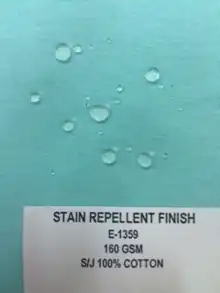 A stain repellent is a product added to fabric in order to prevent stains.[1]