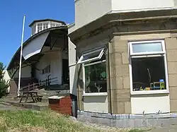 1930s club house (centre), offices (right)