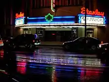 The first film shown at the Stanley was One Romantic Night, starring Lillian Gish.[1][6] Admission was originally between 10 and 40 cents.[3][5] The vertical Stanley sign was added in 1940 and the stylized Stanley script came in 1957.[3][5] The cinema, which had been part of the Granville Theatre Company,[4] was bought by Famous Players in 1941 for $268,000.[3][5]