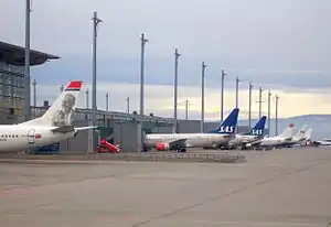 Avinor operates Oslo Airport, Gardermoen and 45 other airports; in the middle two Scandinavian Airlines aircraft—an airline that is partially government owned.