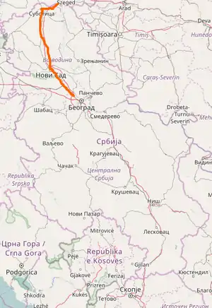 | From | Hungary – Serbia border at Horgoš | |||