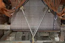Weaving can be done on either a backstrap loom, mostly in indigenous communities or wood frame pedal looms, introduced by the Spanish in the colonial period. Xonacatlan and Ameyalco are two communities that still use the backstrap loom, with pedal looms used in communities such as Coatepec Harinas, Chiconcuac, Texcoco, San Felipe del Progreso, Xonacatlán, Guadalupita. Guadalupita, San Felipe del Progreso and Xonacatlan are particularly known for the making of serapes of naturally dyed wool in this manner.[2][8]