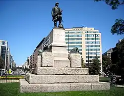 The statue was dedicated at 1:00 pm on April 25, 1881, becoming the first monument erected in Washington, D.C., in honor of a naval war hero.[6] Government employees were dismissed at noon, the same time a procession began at the base of Capitol Hill. The military contingent, led by Commodore Charles H. Baldwin, moved west on Pennsylvania Avenue, where houses were decorated with bunting, and past the White House, before heading north on Connecticut Avenue.[7] The homes surrounding the square were decorated with streamers and flags. Nearly 4,000 invited guests, including members of the Grand Army of the Republic and fellow sailors who served alongside Farragut, listened to John Philip Sousa conduct the Marine Band as they filled three temporary stands that were built on three sides of the statue. Distinguished guests included President James A. Garfield and his wife, Lucretia, members of the President's cabinet, Virginia Farragut, and Ream.[4][8]