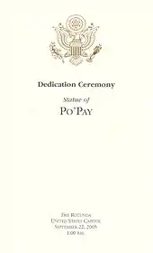New Mexico was the last state to place its second statue in the National Statuary Hall Collection, making it the 100th statue placed there. Po'pay was the twentieth military leader, the twelfth religious leader, and joined six other Native Americans in the Collection.[2]