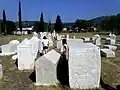The necropolis includes 133 stećci. When the Čapljina-Stolac road was built during the Austro-Hungarian period in 1882, it ran through the necropolis and destroyed at least 15-20 tombstones.[1][6] Out of nine types of stećci, 36 slabs, 1 slab with pedestal, 27 chests, 24 chests with pedestal, 4 tall chests, 5 tall chests with pedestal, 2 sarcophagi (i.e. ridge/gable), 31 sarcophagi with pedestal, and 3 of cruciform.[7]