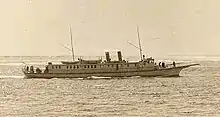 Tillamook Bay was a large very shallow bay on the northern part of the Oregon Coast. In 1911, the yacht Bay Ocean was built in Portland to provide service from Portland to Tillamook Bay for a beach resort. Bay Ocean was designed by R.A. Ballin for the T.B. Potter real estate company, which was developing the (eventually ill-fated) resort at Bay Ocean Spit on Tillamook Bay. Bay Ocean was the largest motor passenger vessel built to that date on the Pacific Coast. She was long (150') and narrow (18' beam), with a clipper bow and bowsprit. She had three gasoline engines connected to a single shaft. She could accommodate 50 passengers on the Portland-Tillamook route but had difficulty on the run and only served in the summer. She was called up by the navy to function as a patrol boat in the First World War.[1] After the war, Bay Ocean was sold to Crowley Launch and Tug Co., of San Francisco.[2]