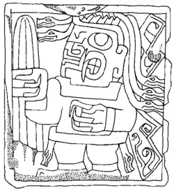 According to the above, then, the character engraved on the stela of the bearer would be representing a ritual specialist, a shaman, in full shamanic transformation: incorporating exceptional perceptions and faculties and, at the same time, in communion and communication with the divinities.[69] The latter is consistent with what Mircea Eliade mentions in his book Shamanism: Archaic Techniques of Ecstasy: "To incorporate an animal during the session is, as we have seen with regard to the dead, more than a possession, a magical transformation of the shaman into that animal".[76]