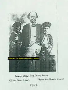 Stephen Arne Decatur Greaves was born on January 30, 1817, in Marion County, South Carolina.[2][3] He served as an officer in the Mexican War, ending his service as a Brigadier General.[1][4][3] In 1846, he became a member of the Mississippi House of Representatives, representing Hinds County as a Democrat.[4][1] After the war, he married Sarah Lowe around 1850 and moved to her 10,000-acre plantation, named "Sunny Place", in Madison County.[5] Before the American Civil War, they owned 600 slaves that worked on the plantation.[5] He died at "Sunny Place" on November 17, 1880.[2][4][5]