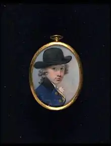 The eighth baronet, Sir John Stepney (1743–1811), was MP for Monmouth Boroughs from 1767–88, ambassador to Saxony from 1775–82 and to Prussia from 1782–4; his career owed much to Henry Somerset, 5th Duke of Beaufort, a close friend from their time together at Oxford.[7] Sir John was the last British subject to have his passport personally signed by the monarch. Financial problems, perhaps the result of his passions for horse-racing and cards, led him on a number of occasions to attempt to sell Llanelly House and other parts of his estates. A notorious rake and member of the circle around Charles James Fox, Stepney never married but had a number of affairs, notably with the society beauty Lady Almeria Carpenter.[8] He had at least three illegitimate sons, one of whom, William Chambers, eventually inherited his estates under the terms of Sir John's remarkably complicated will. He moved abroad in 1802 and died at Trnava, now in Slovakia, on 3 October 1811.