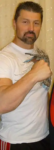 Steve Blackman (born September 28, 1963) is an American martial arts instructor, bail bondsman, and former professional wrestler. He is best known for his appearances with the World Wrestling Federation (WWF) from 1997 to 2002, where he was a frequent challenger for the promotion's mid-card titles. He held the WWF Hardcore Championship six times and holds the record for most combined days as champion, a total of 172 days. [1][2]