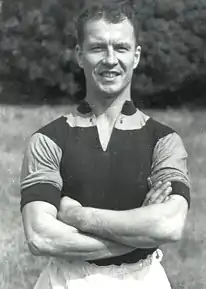 After the war, he returned to competitive football with West Ham – his return 7 years, 9 months and 19 days after his previous game remains as the second-longest period between first-team appearances, behind Reg Attwell.[17] He became a regular feature for West Ham and was an ever-present during the 1947–48 season.[12] He retired in 1951 having made 170 Second Division appearances for the club.[18]