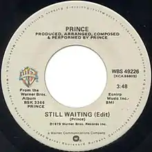 "Still Waiting" was the third US single from Prince's second album, Prince. It was Prince's first ballad to be released as a single and was mildly popular on the R&B chart, reaching number 65.[2] The ballad speaks from the perspective of a young man who has not yet found love but yearns for it. The track is mainly piano, acoustic guitar and synth-based and was often played live with extended instrumental solos and audience teasing. The song is a more traditional R&B ballad, before Prince established himself with trademark sexual romps like "Do Me, Baby" and "International Lover".