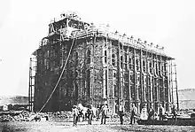 Stillman's third wife, Abigail Thorn,[24] whom he married at the Endowment House at Salt Lake City in 1849 and by whom he would have 8 additional children, was the abandoned plural spouse of Major Samuel Russell who had, only a year earlier, deserted Abigail and their own newborn infant in preference for the gold fields of California. Stillman had been a member of the same (combined Smoot-Wallace-Russell) 'Camp of Israel' company as the Russells in the trek to Utah (arriving September 25, 1847), and he had since established himself in farming to the west of the city, where he'd witnessed the saving of his locust-infested crops in 1848 by the miraculous arrival of seagulls.[5]