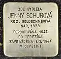 Jenny Schurová née Goldschmidová, born in 1878, was the oldest daughter of Max Michael Goldschmid. In 1900 she married widower Gustav Schura, a partner of Izák Schur & sons, another textile company. Her husband was also a representative of the Jewish community in Náchod until his death in 1935. Schur's family lived in a large house in Tyršova street 200. Their older son Franz, born in 1901 in Náchod, became the owner of the factory in Hlinsko. He could emigrate, but not his wife and the two small children, who were murdered in Auschwitz. Their second son Bedřich, born on 6 July 1906 in Náchod, worked in the Goldschmid factory. In 1939, he, his wife Edita Heller, born on 7 December 1914 in Náchod, and their son Peter, born on 6 December 1938 in Úpice, could save their lives by emigrating to Constantinople. Later-on they settled in Brazil. In December 1942, Jenny Schurová was deported to Theresienstadt concentration camp, at the age of 64. There she spent a year before being deported to Auschwitz concentration camp in December 1943. During the night of 7 to 8 March 1944 she was murdered in a gas chamber.