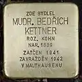 HERE LIVED MUDR. BEDŘICH KETTNER NÉE KOHN BORN 1889 ARRESTED 1941 MURDERED 1942 IN MAUTHAUSEN |