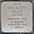 HERE LIVED DR. MED. ALBERT MELLER BORN 1890 DEPORTED 1943 TO THERESIENSTADT MURDERED 1943 IN AUSCHWITZ |