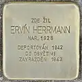 HERE LIVED ERVÍN HERRMANN BORN 1928 DEPORTED 1942 TO AUSCHWITZ MURDERED 1943 |