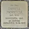 HERE LIVED GABRIELA PACHNEROVÁ BORN 1881 DEPORTED 1942 TO AUSCHWITZ MURDERED 18.12.1943 |