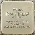 HERE LIVED IRMA VTÍPILOVÁ BORN 1898 DEPORTED 1942 TO AUSCHWITZ MURDERED 23.1.1943 |