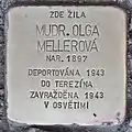 HERE LIVED DR. MED. OLGA MELLEROVÁ BORN 1897 DEPORTED 1943 TO THERESIENSTADT MURDERED 1943 IN AUSCHWITZ |