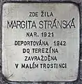 Her grand mother Valentina Straussová was murdered in November 1943 in Theresienstadt. There are two reports on Margita Stránská in Yad Vashem. One is based on the Theresienstädter Gedenkbuch, the other one was filed by Herta Fridman, her aunt.[1][2] |