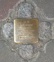 HERE LIVED EMIL BRAND BORN 1881 DEPORTED 1942 TO THERESIENSTADT MURDERED 1942 IN MALY TROSTENETS |