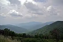 The park is located along the western part of the Blue Ridge anticlinorium, a regional-scale Paleozoic structure at the eastern margin of the Appalachian fold and thrust belt. Rocks within the park were folded, faulted, distorted, and metamorphosed during the late Paleozoic Alleghanian orogeny (325 to 260 million years ago).[8] The rugged topography of Blue Ridge Mountains is a result of differential erosion during the Cenozoic, although some post-Paleozoic tectonic activity occurred in the region.[9][10]